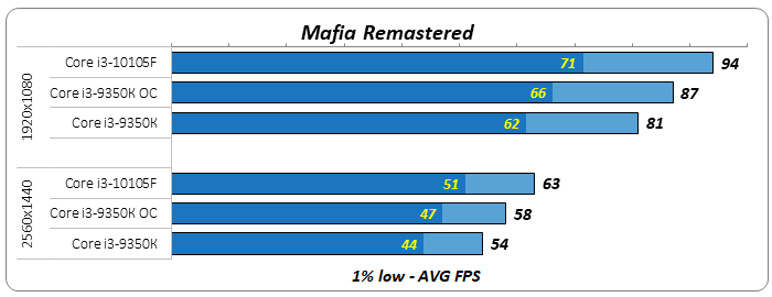 В оставшихся двух проектах – Mafia Remastered и Watch Dogs Legion – первое место уверенно удерживала модель Core i3-10105F.