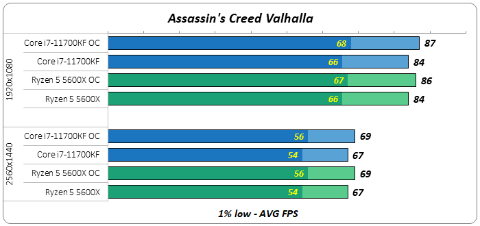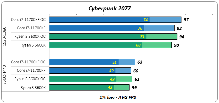 В данном материале будет рассмотрено противостояние процессоров Intel Core i7-10700КF и AMD Ryzen 5 5600X в связке с видеокартой GeForce RTX 3070 в разрешениях 1920 х 1080 и 2560 х 1440.