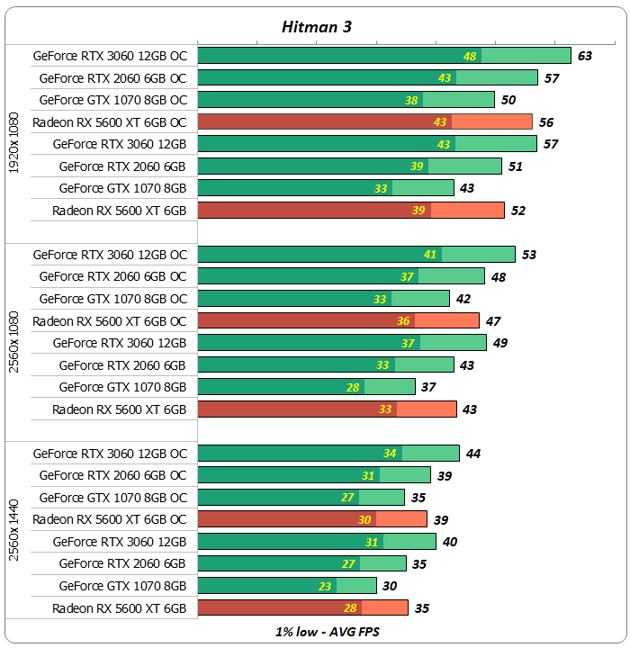 В играх Hitman 3 и The Witcher 3: Wild Hunt видеокарты GeForce RTX 2060 и Radeon RX 5600 XT показали очень близкую производительность.