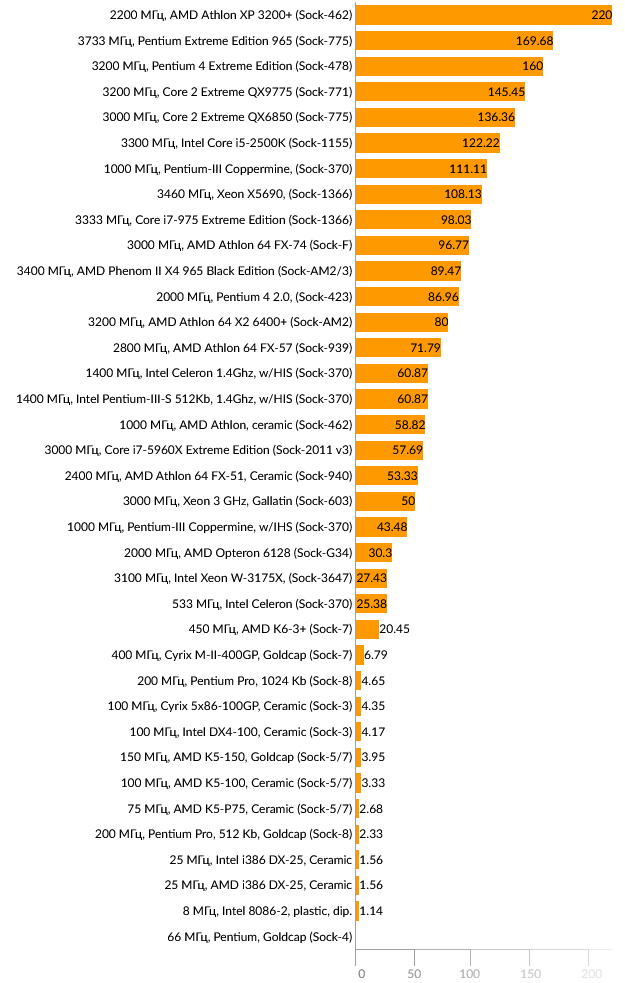 Измеряем производительность современных и не очень процессоров в граммах на мегагерц