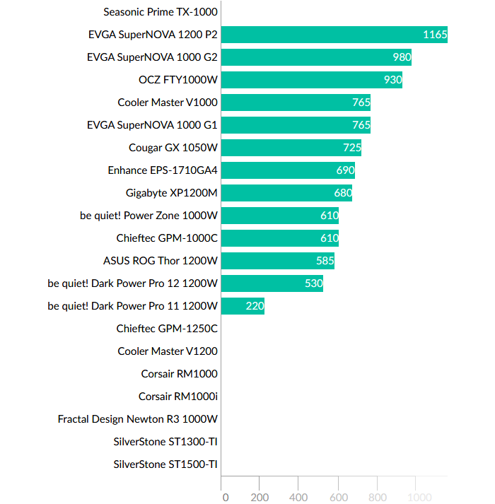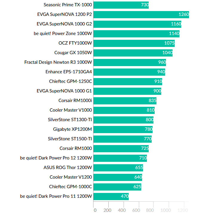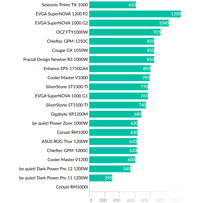 Кроме того, в нашей подборке есть несколько очень серьёзных «платиновых» моделей, таких как Cooler Master V1200, Fractal Design Newton R3 1000W, Gigabyte XP1200M и Asus ROG THOR 1200W.