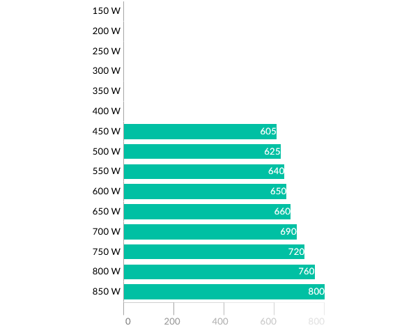 Высокая нагрузка – 750 Вт (режим выбран, чтобы представить на графике максимальное количество участников теста).