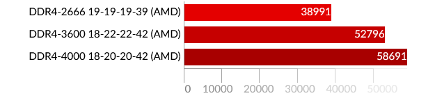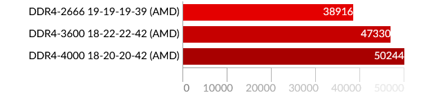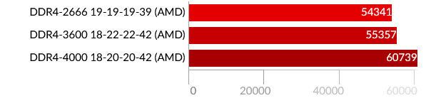 Сразу видно по результатам, что скорость заметно увеличилась. Тут никакого секрета нет, ведь произошел заметный скачок с 2666 на 3600 МГц.