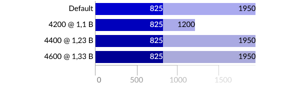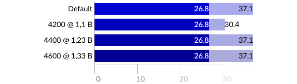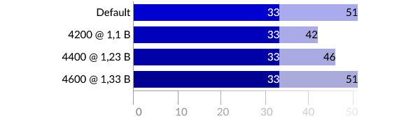 Получается совсем другой результат. На той же частоте можно использовать напряжение значительно ниже, а результат итоговый будет лучше потому, что меньше тепловыделение и кулер работает тише.