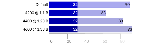 Поскольку это результат системы с настройками по умолчанию, то результат не очень впечатляет. Частота процессора снижается до 4.2 ГГц, температура доходит до 90°C.