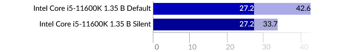 Что касается вентиляторов, то они управляются через ШИМ. Также можно выбрать несколько предустановок в BIOS материнской платы, но разницы между режимами Standard и Silent не отмечалось.