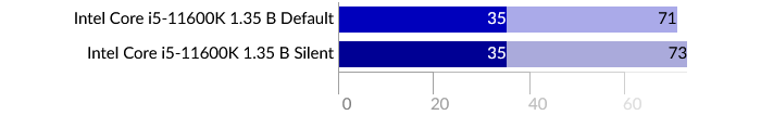 Очевидно, что система стала значительно тише, причем на температуре это почти не сказалось. Точнее, она стала больше всего на три градуса, что вполне терпимо.