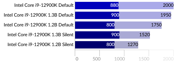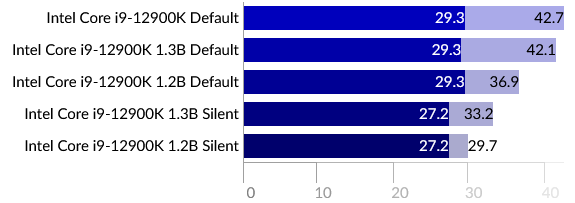 - Intel Core i9-12900K @ 4.0/3.2 при 1.2 В silent.