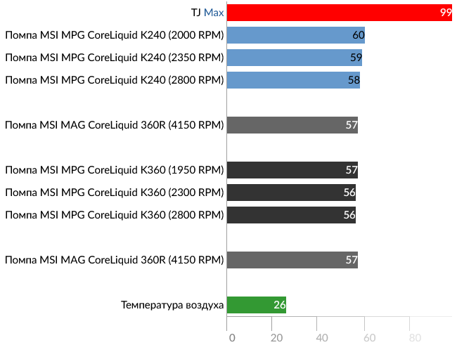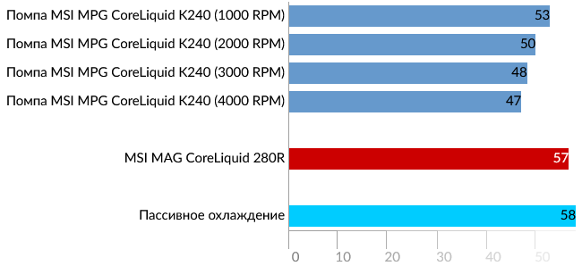 Ситуация выравнивается, появляется градация по серии и габаритам радиаторов. Несмотря на свои особенности, MPG CoreLiquid K240 проявляет отличное упорство, подбираясь к старшей модели. Похвальная выносливость.